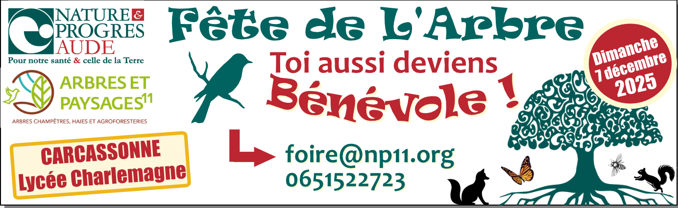 C’est parti pour la 10e édition de la fête de l’arbre ! On se donne rendez-vous au lycée Charlemagne à Carcassonne pour une super journée entourée de pépiniéristes, artisan·es, animations, restaurations et buvettes !